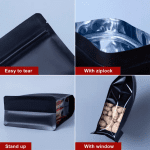 Factory customised environmentally friendly material matte flat bottom stand up plastic bags intaglio printing food coffee peanuts